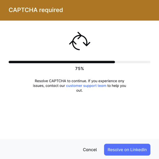 Encountering a CAPTCHA while setting up LinkedIn? 🧩 Simply click "Try by yourself," solve the puzzle, and enter the PIN to complete setup. We’re dedicated to making your SLS Outreach Kampagnen Manager experience seamless. Enjoy! 🚀