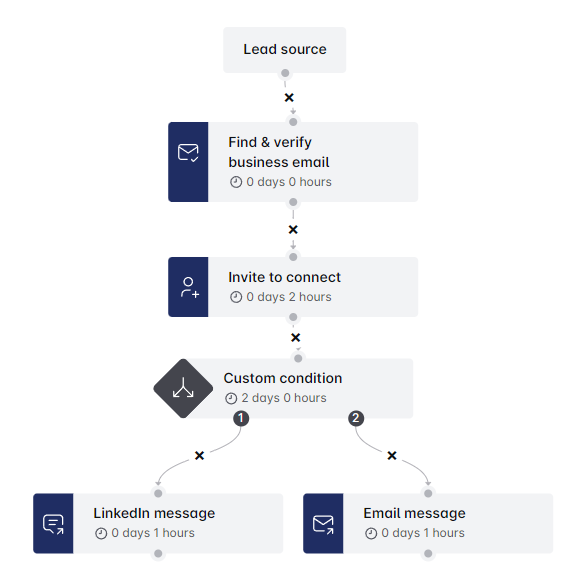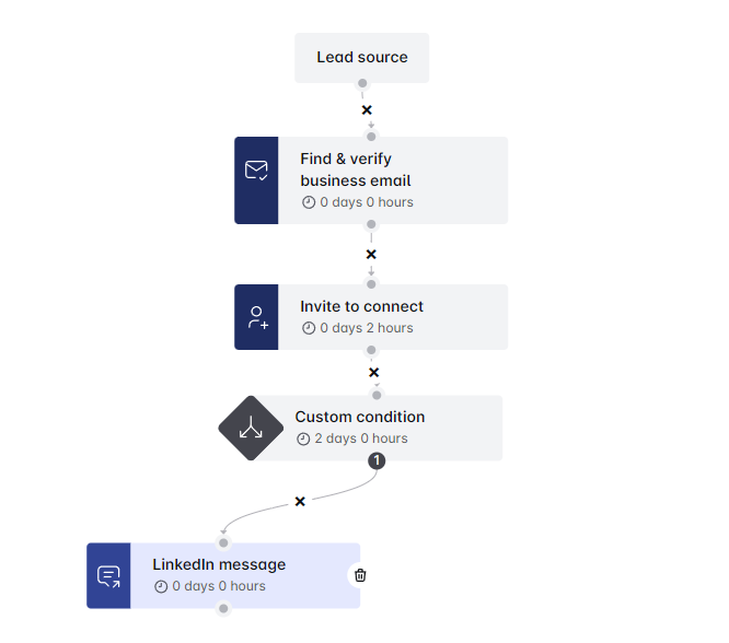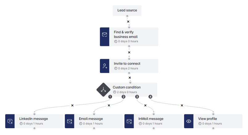 Leverage Custom Conditions in the SLS Outreach Kampagnen Manager to optimize your campaigns and workflow. With up to five tailored outputs, you can handle leads based on connection status, email verification, and InMail options, creating seamless, efficient sequences. Start using Custom Conditions to elevate your campaigns and engage smarter! 🚀