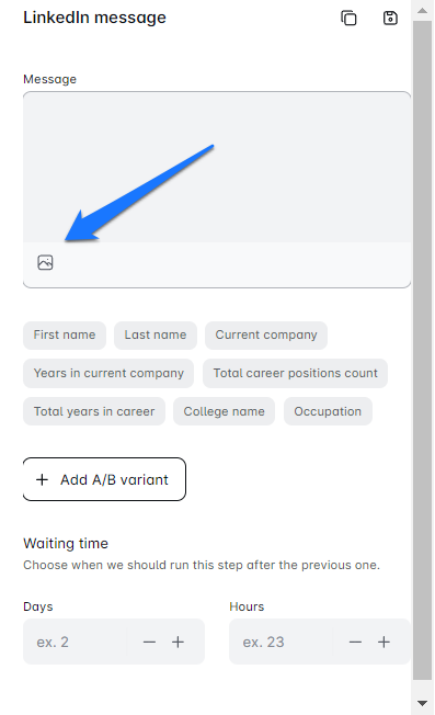 - For email messages, choose where to insert your image or GIF. For LinkedIn messages and InMails, SLS Outreach Kampagnen Manager will place your personalized images and GIFs at the bottom of the message.
